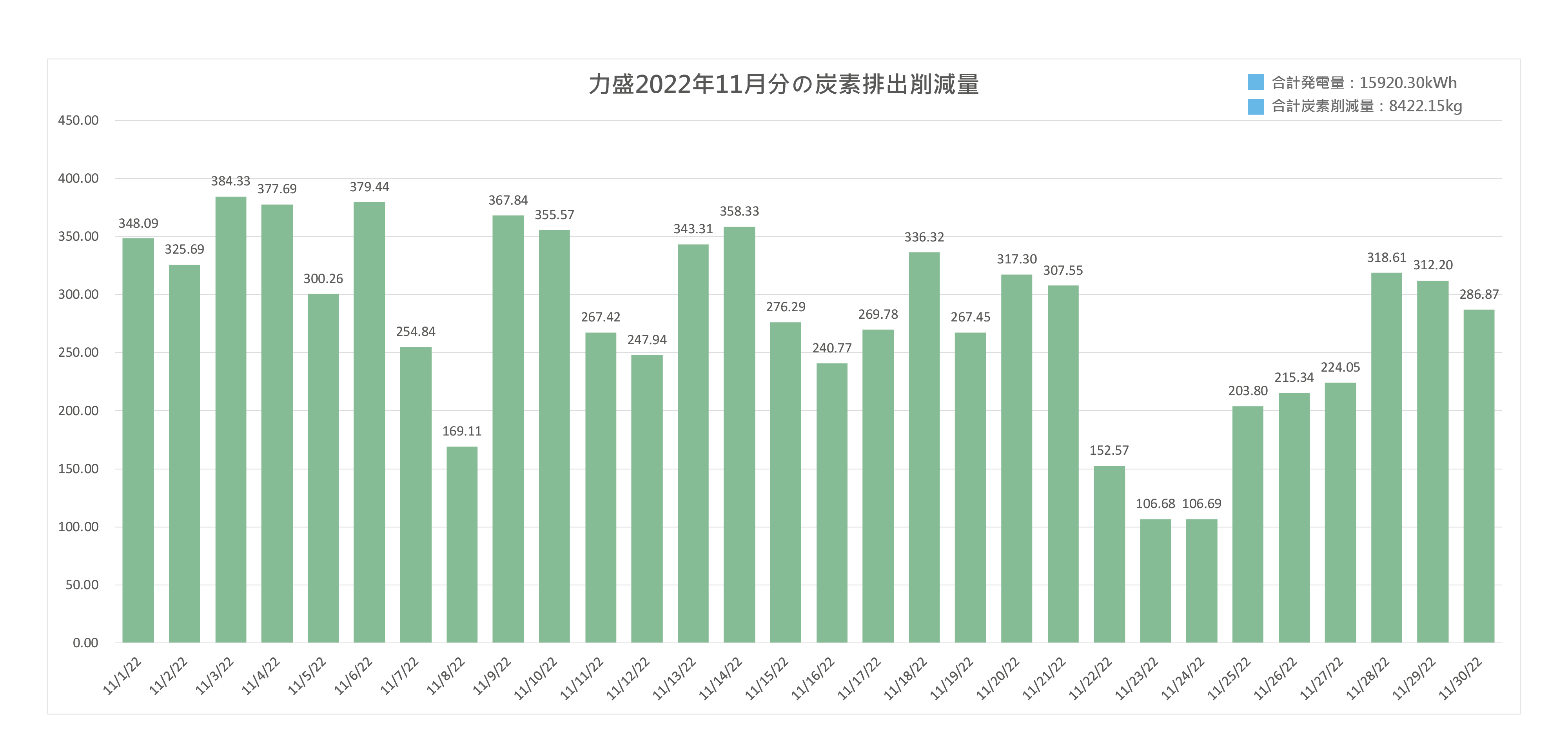 2022年11月分の合計発電量は 15920.30kWh