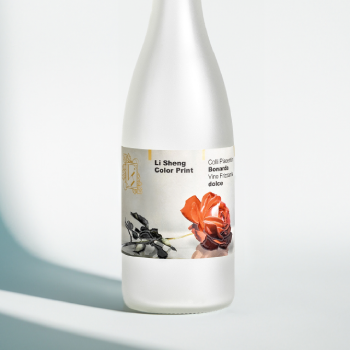 該貼標在紙張的選擇上使用了有規律紋路的美術紙,結合霧面的瓶身後十分有質感