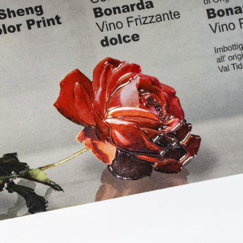 這個玫瑰絕對是最吸引人的部分,我們用了非常厚的網印上光結合圖面設計上光的位置